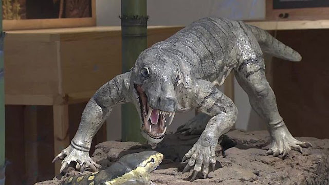 precedieron a los mamíferos, caracterizados por sus dientes de sable y su
